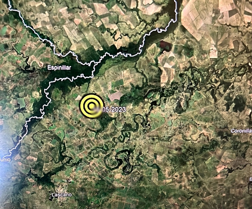 El episodio se observó en una area rural a 13 km de la ciudad de Lascano, sobre las 17 horas y 16 minutos de la jornada de la víspera.