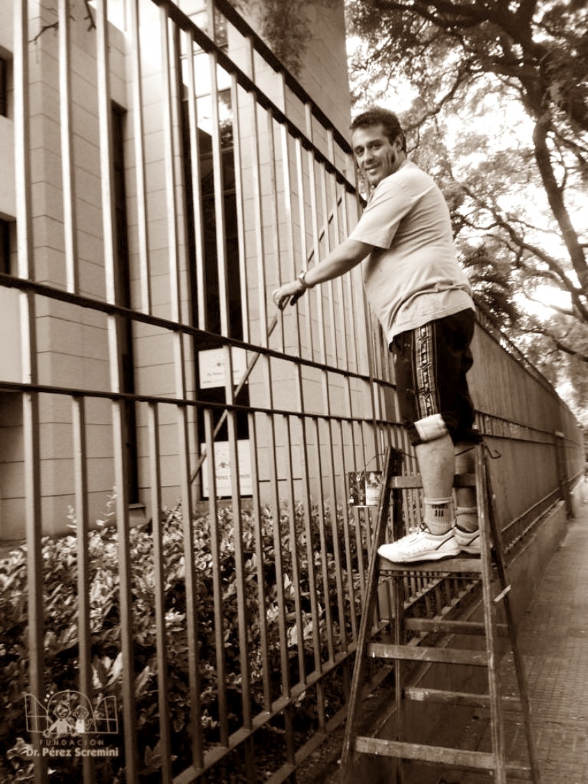 "Se acercó un día, y nos planteó su necesidad de colaborar con nosotros, en su tiempo libre, cumpliendo con alguna tarea de mantenimiento. Es así, que desde hace unas semanas, Marcelo concurre a la fundación en sus días libres, y se ha dedicado a lijar y pintar nuestra reja", escribió la Pérez Scremini el 21 de enero de 2014.