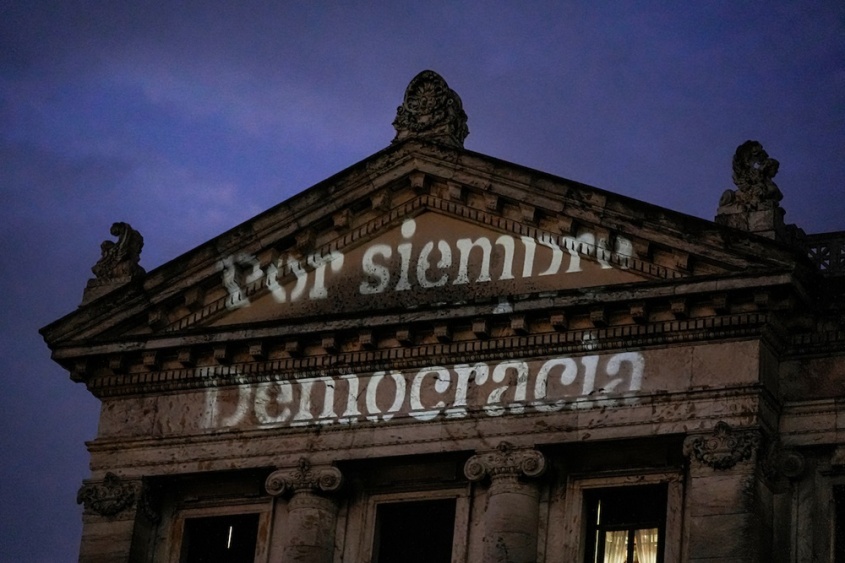 También se recordó parte del discurso pronunciado por el actor fundacional de la Comedia Nacional, Alberto Candeau, en el acto del 27 de noviembre de 1983 en el Obelisco “Por un Uruguay democrático y sin exclusiones”.