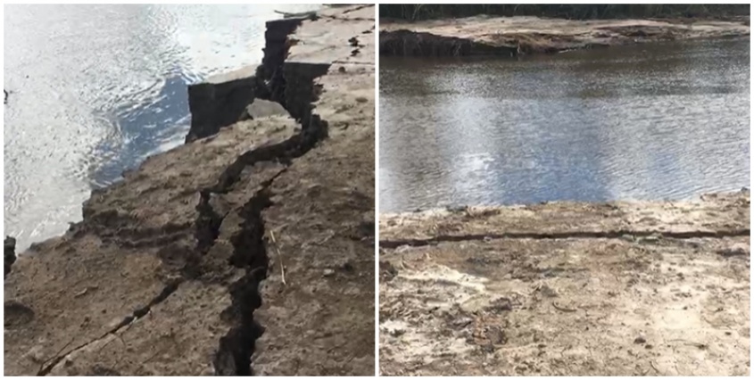 Si bien, OSE dice en un comunicado que el dique “no sufrió ningún colapso ni nada que pudiera ser considerado una rotura”, las grietas se observan en el informe de los colegas de la ciudad de Libertad.