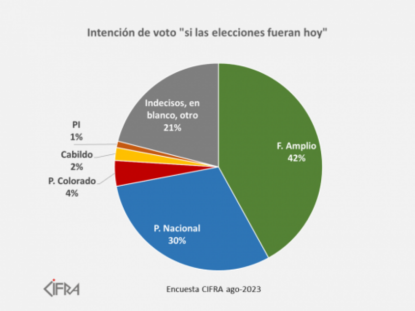La preferencia por el Frente Amplio osciló entre el 41% y el 44%, y hoy está en 42%.