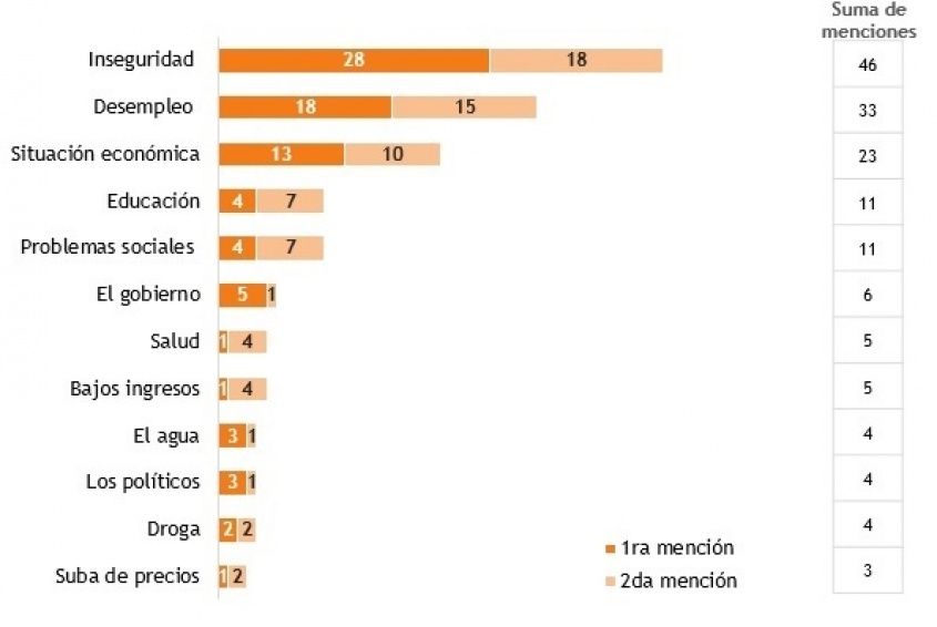 Por más que la “inseguridad” es el problema individualmente más mencionado, la suma de las preocupaciones de naturaleza económica la superan.