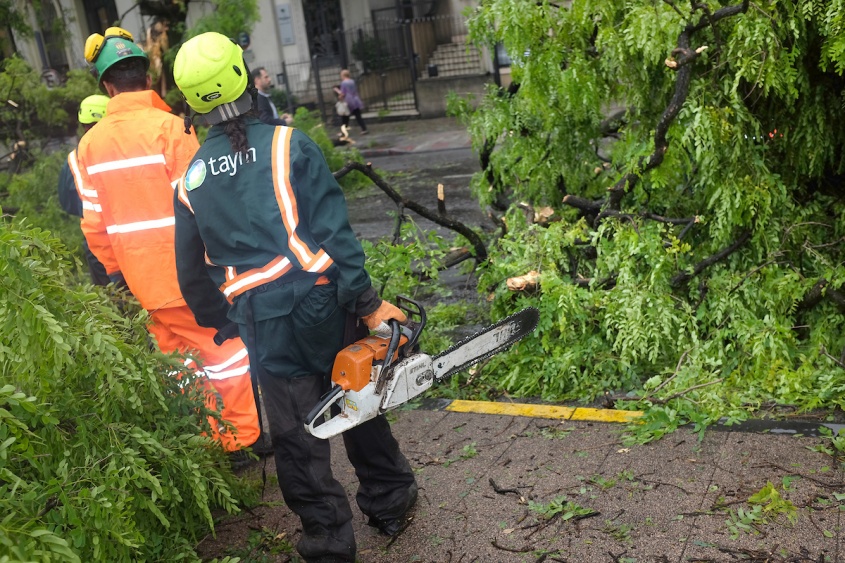 Fueron 38 avisos de caída de árboles, 2 por columnas de alumbrado caídas en la calle, 1 por evacuación debído a ingreso de agua a una vivienda y 1 por voladura de techo en una finca.