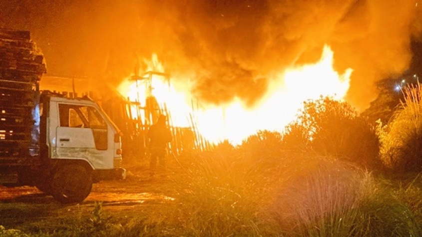 Incendio en depósito de maderas a cielo abierto de 3.000 m2, en camino Cruz Del Sur y camino Carlos A López; el fuego estaba generalizado, trabajan bomberos de Casavalle, Pando y de Maroñas. pic.twitter.com/LLqCSxfIOe