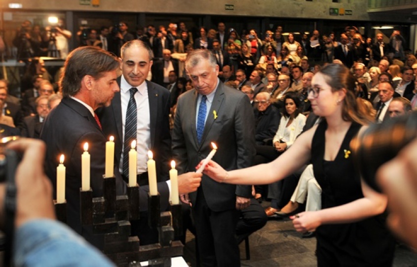 Durante la conmemoración, Lacalle Pou realizó el encendido de la vela central del candelabro, acompañado del presidente en Ejercicio de B´nai B´rith Uruguay, Andrés Yusupoff; la embajadora del Estado de Israel, Michal Hershkovitz, y el representante del Comisionado de la OEA para la Lucha contra el Antisemitismo, Fernando