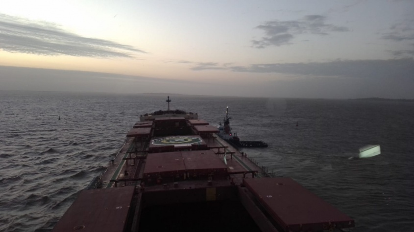 El buque fue asistido por dos remolcadores de bandera uruguaya que le permitieron ingresar al canal y continuar su navegación hasta el puerto de Nueva Palmira.
