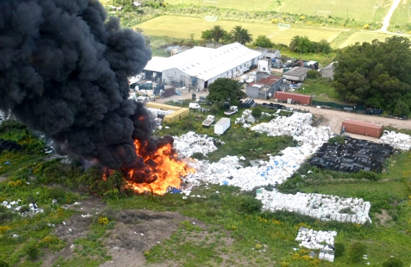 Debido a la gran cantidad de plástico consumido la columna de humo puede verse en varios barrios de Montevideo, en Canelones y San José. Al momento se desconoce el orígen del foco igneo.