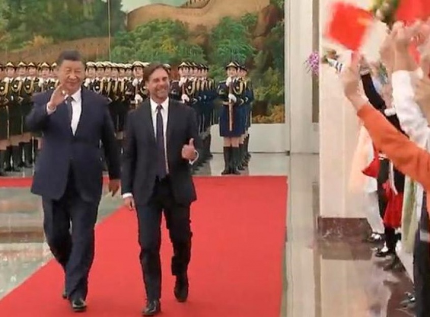 🇺🇾🤝🇨🇳 El canciller @OmarPaganini participó del encuentro que el presidente @LuisLacallePou mantuvo con el líder chino Xi Jinping, que incluyó la firma de 24 acuerdos bilaterales y el compromiso de avanzar aceleradamente hacia la construcción de una Asociación de Libre Comercio. https://t.co/n5hpU5MCN1 pic.twitter.com/EDc6ejdSyI