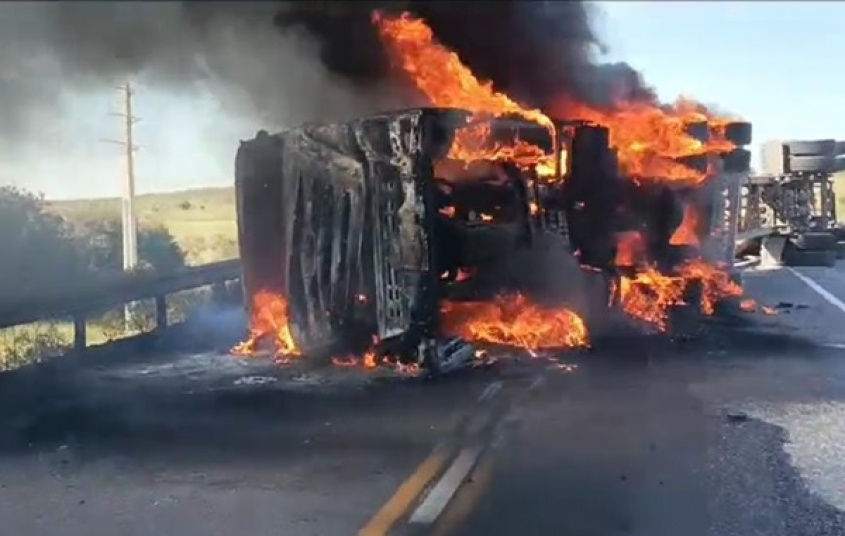 El siniestro de tránsito ocurrió cuando el camión, que circulaba de Este a Oeste transportando troncos tipo rolo, volcó y se incendió, cortando ambas sendas de circulación.