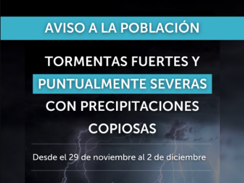 #AvisoALaPoblación por tormentas fuertes y puntualmente severas con precipitaciones copiosas.
