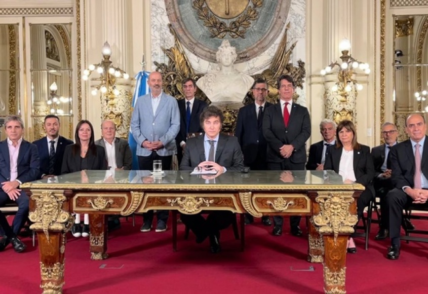 "Hoy es un día histórico para nuestro país. Después de décadas de fracasos, empobrecimiento, decadencia y anomia hoy empezamos formalmente el camino de la reconstrucción", ha asegurado Milei durante un discurso televisado.