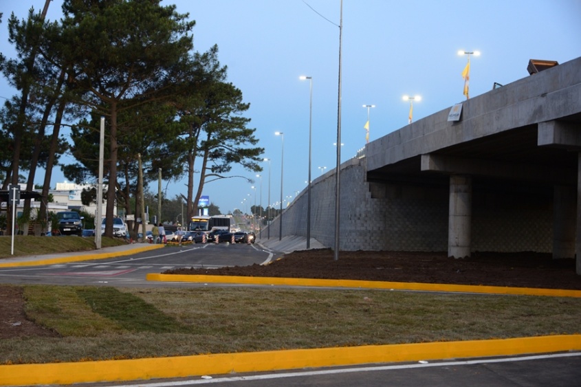 El pasaje superior se ubica sobre la avenida Argentina y eleva la ruta interbalnearia, con dos carriles por sentido. La inversión contempla un tramo de 800 metros de longitud y un puente de casi 100 metros. Se colocaron, además, unos 1.400 metros de caños de desagüe, se mejoraron y pavimentaron las calzadas de servicio y se construyó un gálibo de casi 5 metros y una vereda peatonal.