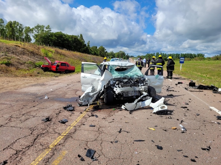 Los cuerpos resultaron calcinados debido a que el auto tomó fuego tras el impacto con el vehículo que venia de frente y que conducía una mujer que resulto con lesiones de consideración.