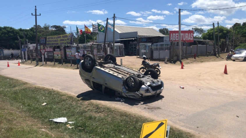 Según informó la Policía Caminera, la camioneta que se dirigía de Este a Oeste chocó con otra camioneta por lo que perdió el dominio, despistó a una calle lateral, chocó una moto y posteriormente volcó.