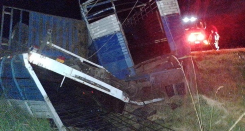 El siniestro de tránsito ocurrió cuando un camión con remolque, que circulaba de Norte a Sur transportando vacunos en pie, fue colisionado en el eje trasero del remolque por una camioneta que circulaba en sentido contrario.