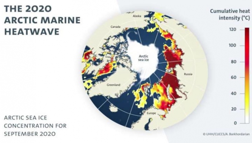 La ola de calor más potente hasta la fecha en el Océano Ártico se produjo en 2020; continuó durante 103 días, con temperaturas máximas que superaron en cuatro grados centígrados el promedio a largo plazo. La probabilidad de que se produzca una ola de calor de este tipo sin la influencia de gases de efecto invernadero antropogénicos es inferior al 1%, según lo calculado por el equipo de Barkhordarian en el Clúster de Excelencia CLICCS. Con ello, han reducido el número de escenarios climáticos plausibles en el Ártico. Según el estudio, las olas de calor marinas anuales serán la norma.