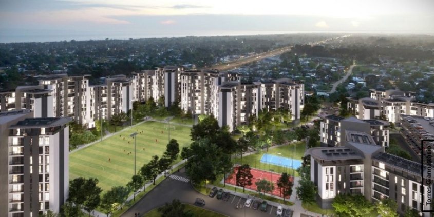 Las "Torres Gianattasio" del Km 27 y medio de Médanos de Solymar, incluirán 1.152 apartamentos, y más de 7.000 metros cuadrados de espacios verdes, incluyendo una cancha de fútbol.