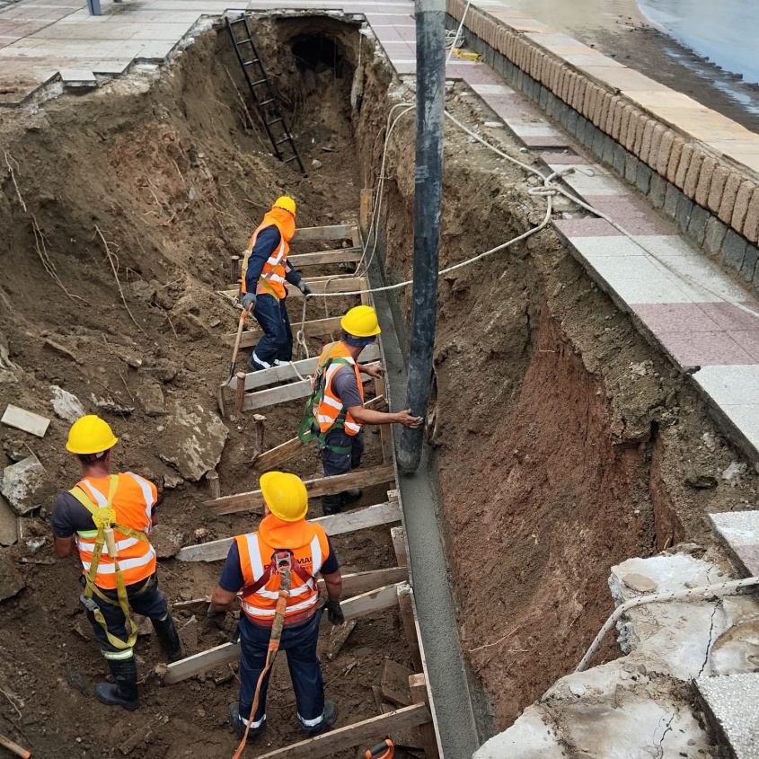 La comuna comenzó con las trabajos para reparar el socavón que se produjo en la rambla montevideana.