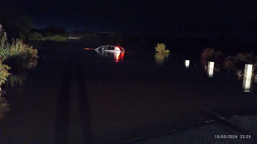 En tanto, Briozzo informó que en las últimas horas, un vehículo que NO respetó la señalización y cruzó una ruta tapada de agua, aún se encuentra sumergido en ese lugar.
