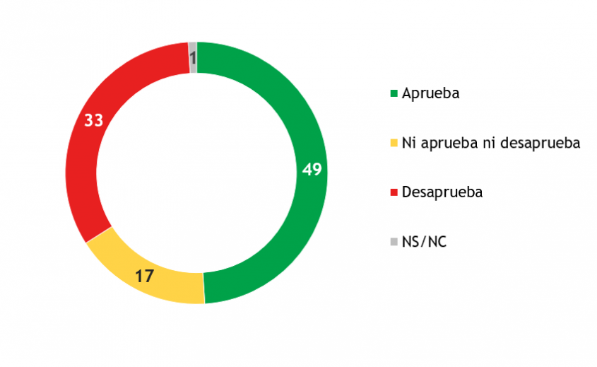 En comparación con la medición anterior, el mandatario creció de 45% a 49%, y disminuyó su desaprobación de 36% a 33%. Por lo tanto, el saldo neto de evaluación, que era de +9 al terminar el año pasado, crece a +16.