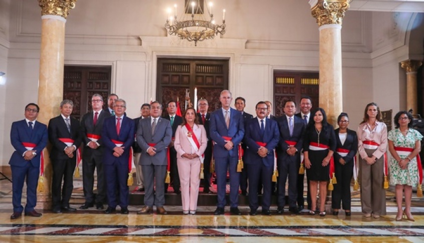 Boluarte ha tomado juramento al ministro de Interior, que estará a cargo de Walter Ortiz Acosta; de Interior, en manos de Morgan Quero Gaime; y de Desarrollo Agrario y Riego, para Ángel Manero Campos. Además, Sergio González Guerrero asume el Ministerio de Producción; Elizabeth Galdo Marín, el de Comercio Exterior y Turismo; y Ángela Hernández Cajo, en el de Mujer y Poblaciones Vulnerables.