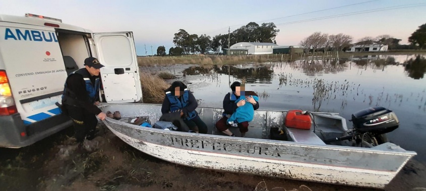 Un niño que debía ser internado, fue trasladado en bote en medio de las inundaciones en Treinta y Tres.