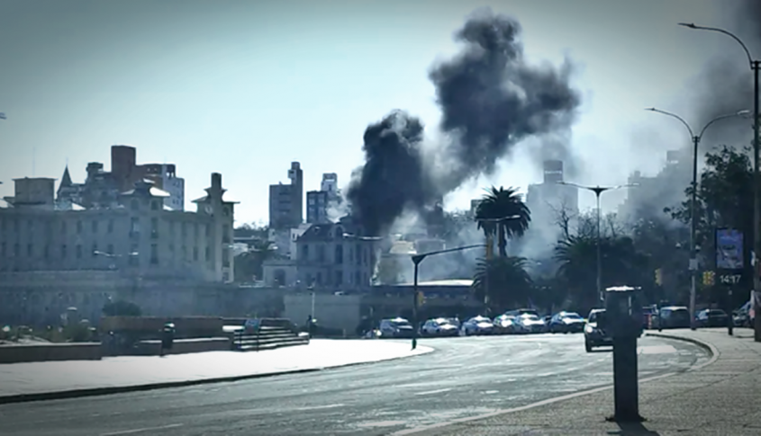 En el lugar se realizaban obras, concretamente en oficinas del Parlasur, en el primer piso, cuando se inició el fuego.