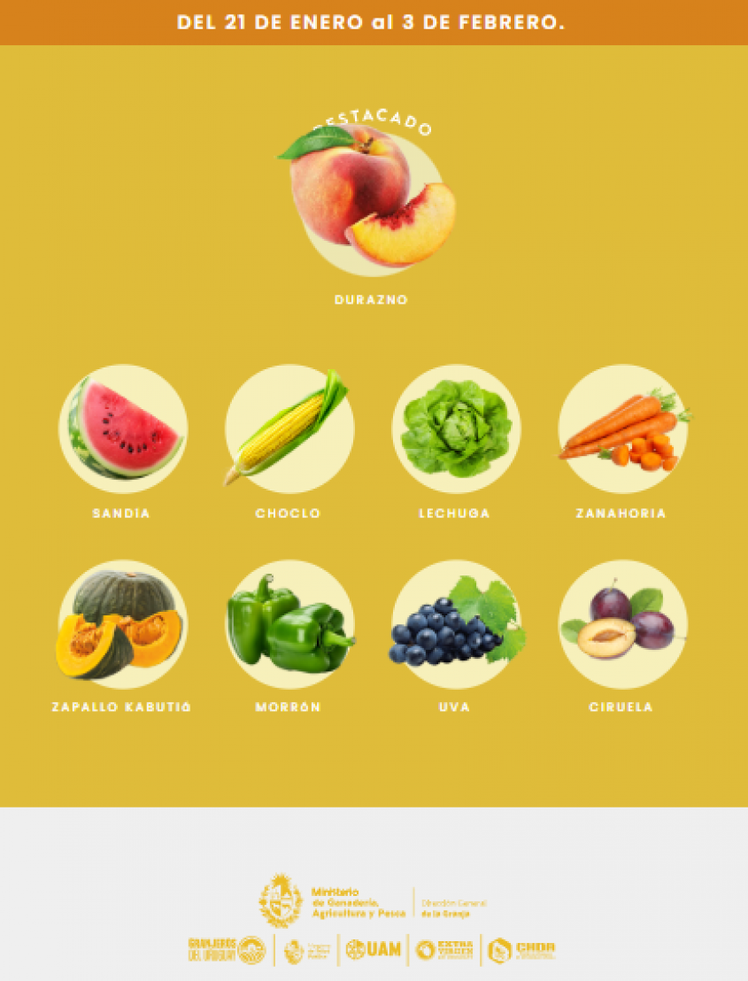Además, los otros productos recomendados son: uva, choclo, ciruela, lechuga, morrón verde, zanahoria, zapallo cabutiá y sandía.
