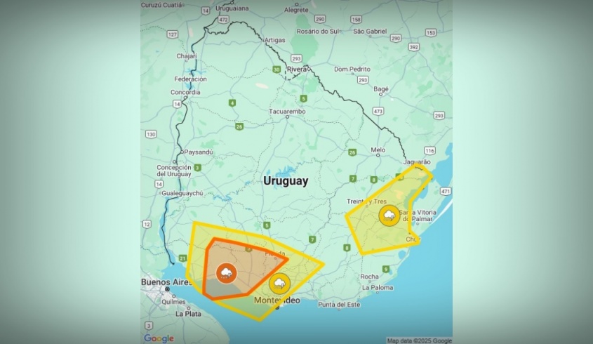 "En zonas de tormentas se podrán registrar lluvias abundantes en cortos períodos, ocasional caída de granizo, intensa actividad eléctrica y rachas de vientos fuertes", indicó Inumet, que agregó que "se continuará monitoreando la situación y se informará ante eventuales cambios".