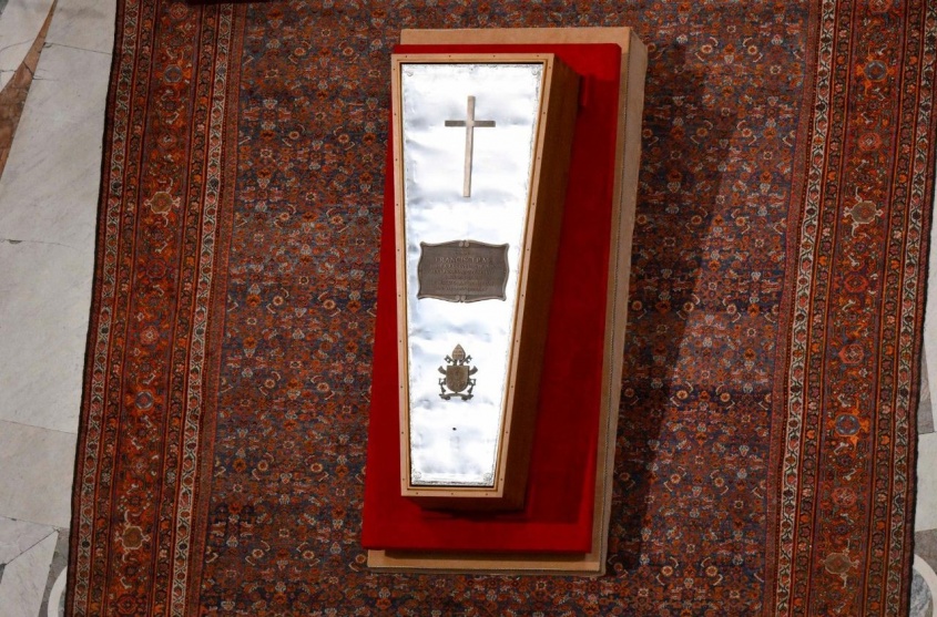 Sobre el féretro del Papa Francisco se han impreso los sellos del Cardenal Camarlengo de la Santa Iglesia Romana, Kevin Joseph Farrell, de la Prefectura de la Casa Pontificia, de la Oficina de las Celebraciones Litúrgicas del Romano Pontífice y del Capítulo Liberiano. A continuación, se ha colocado el féretro en el sepulcro y se ha rociado con agua bendita, en una ceremonia privada.