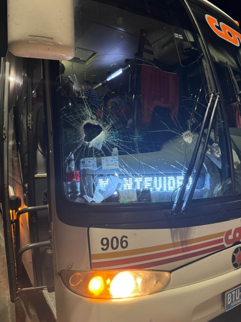 El proyectil arrojado impactó en la zona frontal derecha el bus, próximo a ls 2 y 40 de la madrugada en el km 35, cerca del Peaje de Pando, informó Belso Rodríguez vocero de la Policía Caminera.