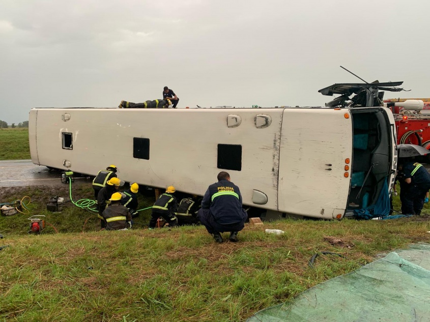 Según informó la perdiodista Silvia Techera de Cerro Largo, el chofer, un policía y una mujer mayor de edad serían en principio las víctimas fatales. Trabajan autoridades de Lavalleja y Treinta y Tres. El ómnibus habia salido desde Montevideo con destino a la ciudad de Melo.