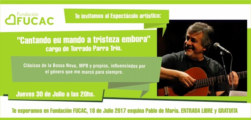 El espacio cultural de Fundación Fucac se despide de su agenda del mes de julio. Este jueves 30 a las 20 horas tendrá lugar el espectáculo artístico "Cantando eu mando a tristeza embora" a cargo de Torrado Parra Trío.