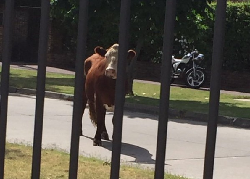 Se trata de un novillo que fue fotografiado por varias personas ya que estuvo parado en la puerta de casas de la zona y embistió dos vehículos.