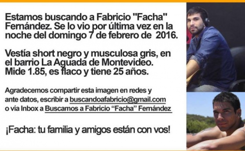 Fernández, también conocido como 'Facha', se desempeña como periodista en varias emisiones de El Espectador, y fue visto por última vez en el barrio de La Aguada.