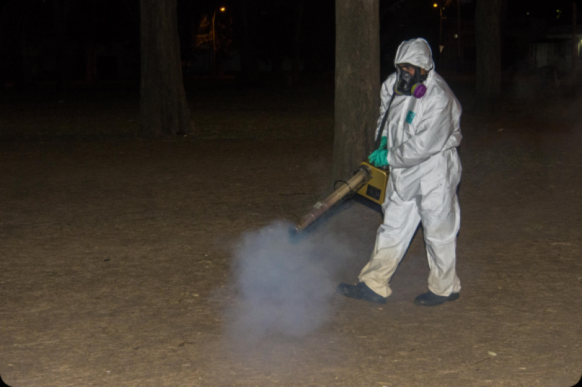 Se realizará una fumigación espacial con máquinas de arrastre que circulan por la calle. El producto que se utilizará es de baja toxicidad y estará en el aire durante unos quince minutos.