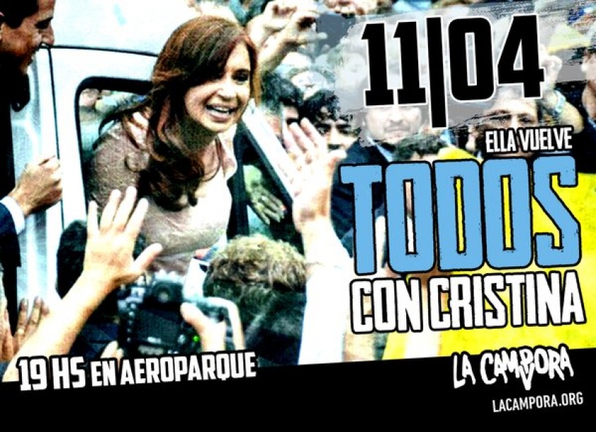 Partidarios convocaron a una movilización para recibir a la ex presidenta argentina que regresó desde la Patagonia.