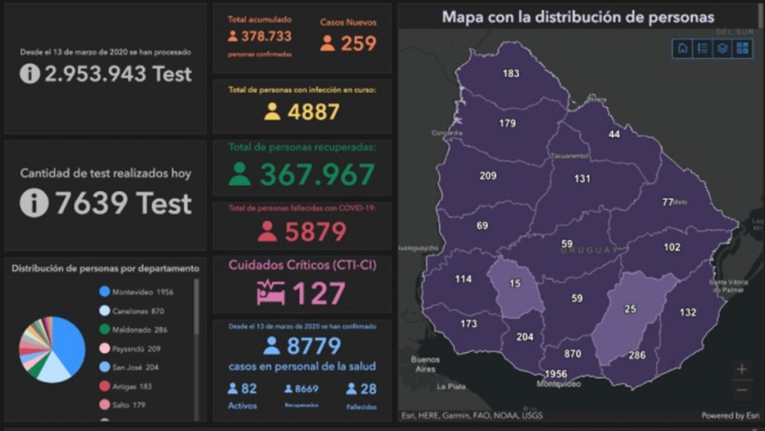 Coronavirus Uruguay: 259 casos nuevos y 8 fallecidos este sábado