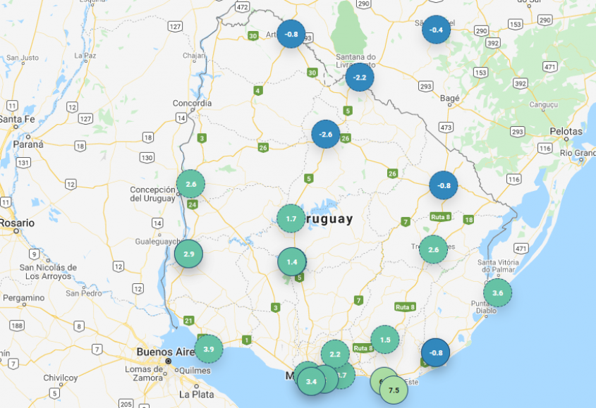 Las bajas temperaturas se mantienen y el invierno sigue a pleno. La mínima nacional de este martes se registró en Tacuarembó con - 2.9, seguido por Rivera con -2,5, informó el Inumet.