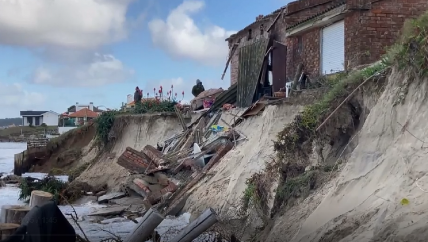 La crecida del océano debido a los fuertes vientos de las últimas horas provocó el derrumbe parcial de una casa ubicada frente al mar en el balneario rochense Costa Azul.