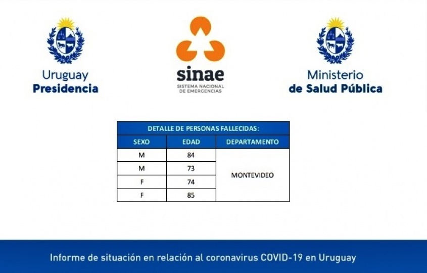 Este martes se confirmaron 4 fallecimientos -todos en Montevideo- y 154 nuevos casos de COVID-19 en 4.949 análisis