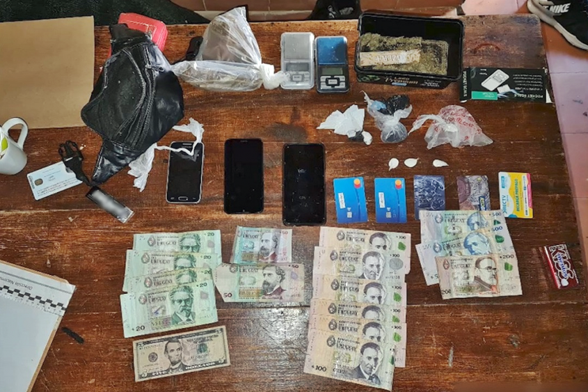 Durante el proceso de investigación se logró establecer el modus operandi de ambos responsables y reunir los elementos de prueba, por lo que mediante orden de allanamiento expedida por la Justicia, de la vivienda en cuestión se incautaron dosis de cocaína y de marihuana ubicadas en diferentes recipientes, dos balanzas de precisión, tres celulares, cinco tarjetas magnéticas, dos mil ochenta pesos uruguayos y cinco dólares americanos.
