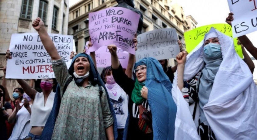 La concentración fue convocada por la agrupación Cataluña Abolicionista Plataforma Feminista (CATAB) y en la misma se reclamó también atención humanitaria para las mujeres afganas que logren salir del país y precisen asilo y acogida.