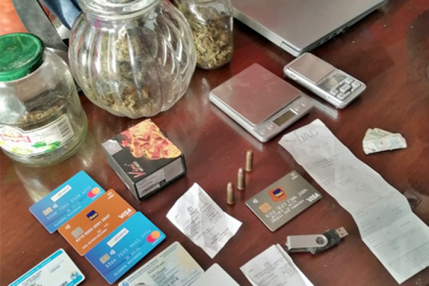 En Maldonado, un hombre de 33 años fue detenido y se le incautaron frascos con cogollos de marihuana, dos balanzas de precisión, tres proyectiles calibre 32, dos tarjeta prepagas, una tarjeta de débito, un pendrive, una computadora y varios vouchers.
