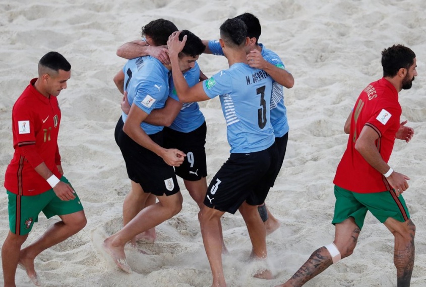 La selección de Uruguay eliminó al actual campeón mundial de fútbol playa, Portugal, en un partido de infarto (7-6) en el que fue casi todo el tiempo por detrás en el marcador.