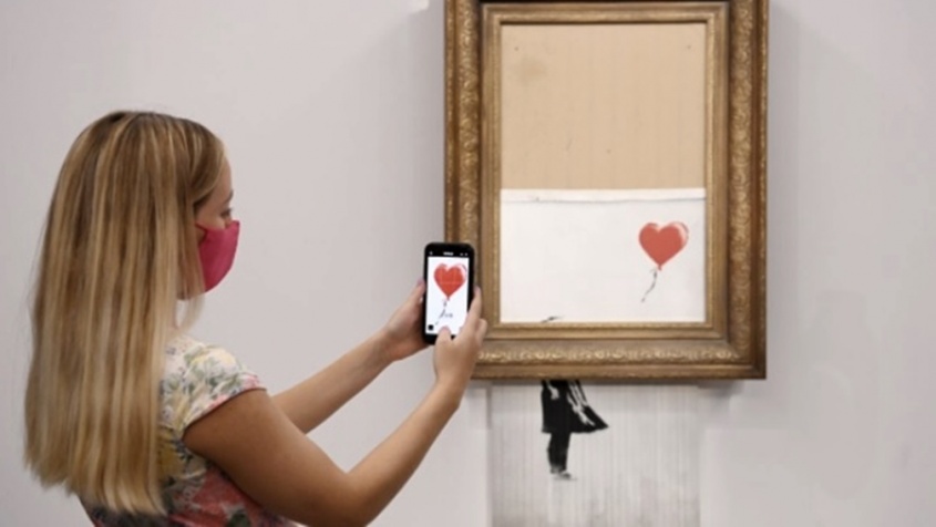 Los presentes acababan de asistir a la metamorfosis de "Girl with Balloon", vendido por un millón de libras (unos 1,2 millones de euros / 1,4 millones de dólares) y revalorizado al instante al convertirse en una obra nueva, medio rasgada y más mediática si cabe, titulada "Love is in the Bin" ("El amor está en la papelera").
