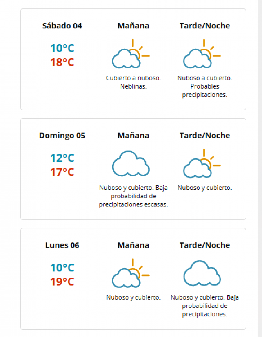 El fin de semana tendrá cielo nuboso a cubierto con temperaturas típicas de la época, según datos proporcionados por el Inumet.