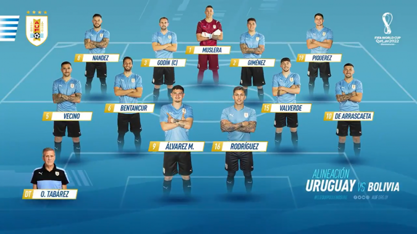 La AUF difundió la alineación y la planilla completa para el encuentro correspondiente a la fecha seis de las Eliminatorias.