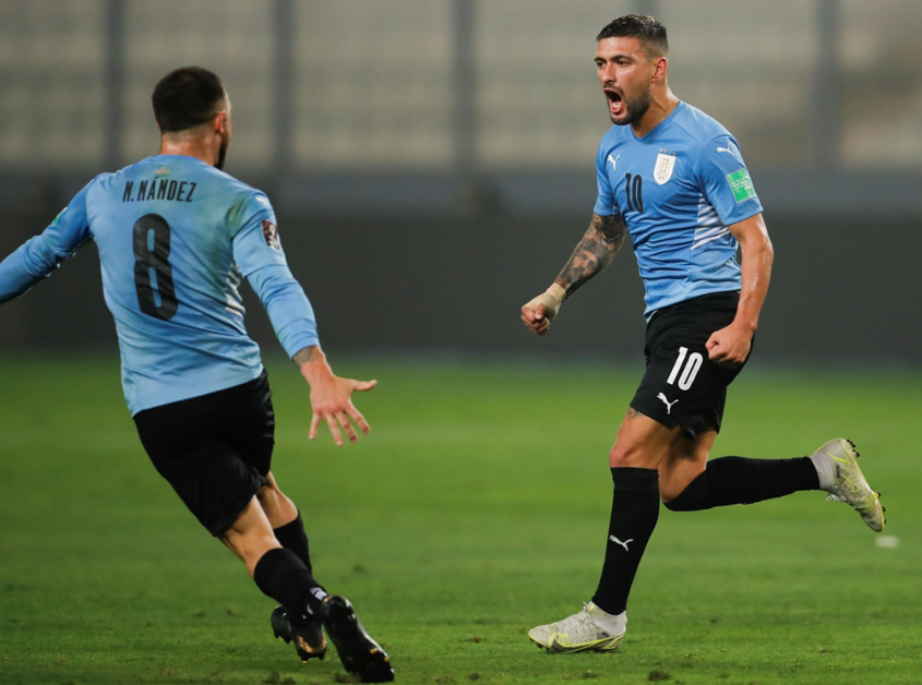 Uruguay: Fernando Muslera; Nahitan Nández, Jose María Giménez, Diego Godín, Martín Cáceres, Mauro Arambarri, Matías Vecino, Federico Valverde, Giorgian De Arrascaeta; Maximiliano Gómez y Brian Rodríguez.