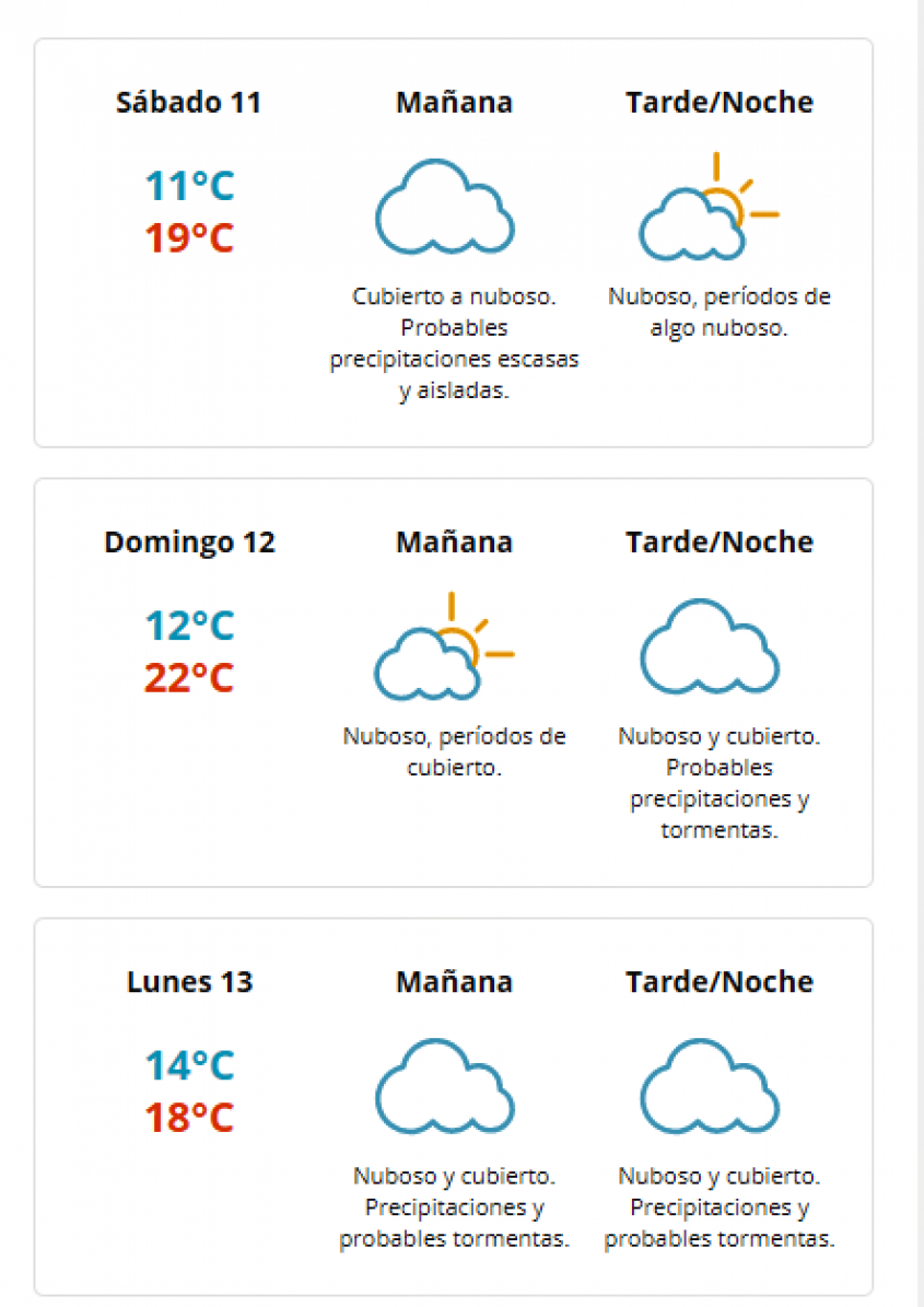 El fin de semana tendrá nubosidad variable, alto porcentaje de humedad y probabilidad de escasas precipitaciones.